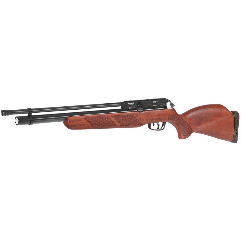 Gamo’s Coyote reaches the PCP Pre-Compressed Pneumatic airgun market as the brand’s latest, leading-edge wooden stock rifle, including a multi-shot mechanism which works on a removable magazine holding ten pellets.